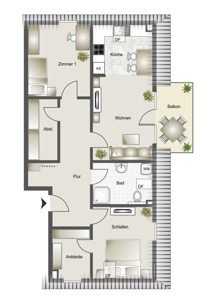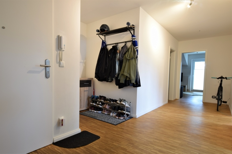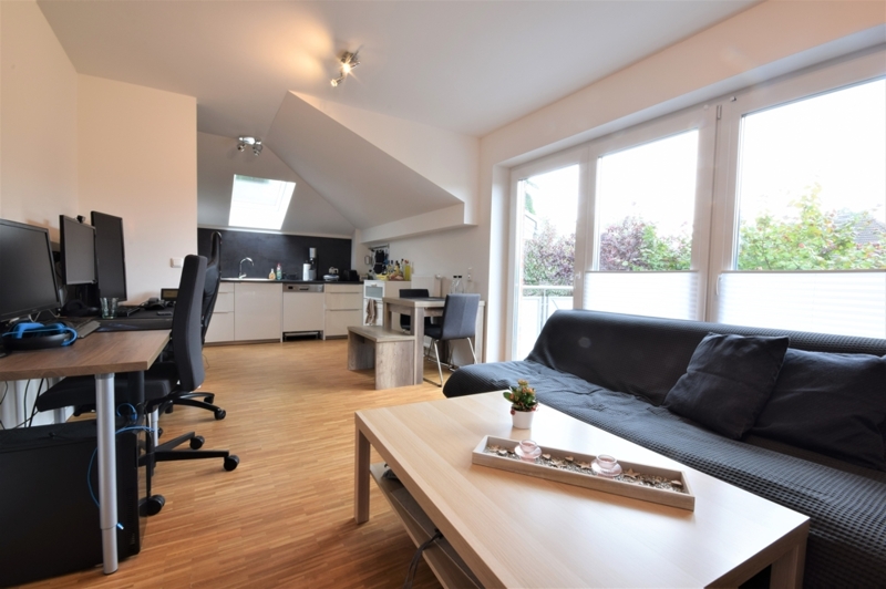 Durch den Flur betreten Sie den geräumigen Wohn-/Essbereich mit der offenen Küche und Zutritt auf den großzügigen Balkon. Hier können Sie an der frischen Luft nach einem stressigen Arbeitstag mit einem Buch wunderbar entspannen.