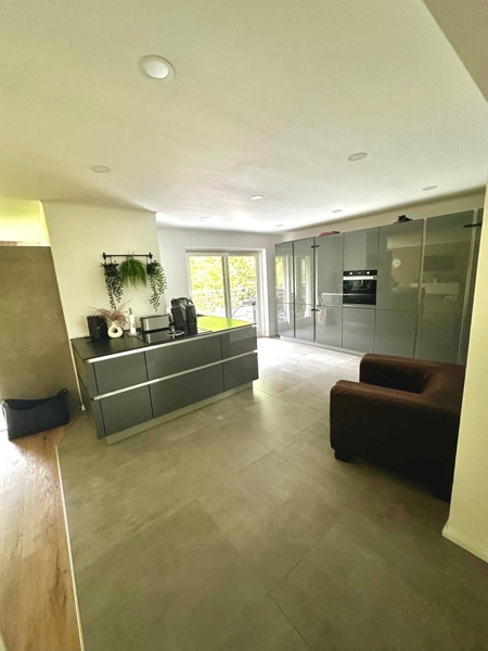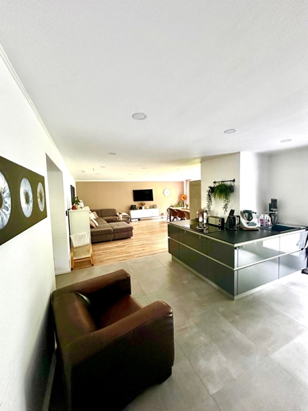 Die offene Küche ist mit allen erforderlichen Geräten und Schränken ausgestattet und fügt sich sehr gut in das Gesamtbild ein.