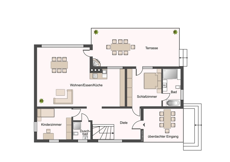 Dieser bietet pflegeleichte Bereiche, die es Ihnen, Ihren Kindern oder Ihrem Hund ermöglicht, hier viele schöne Stunden zu verbringen.
