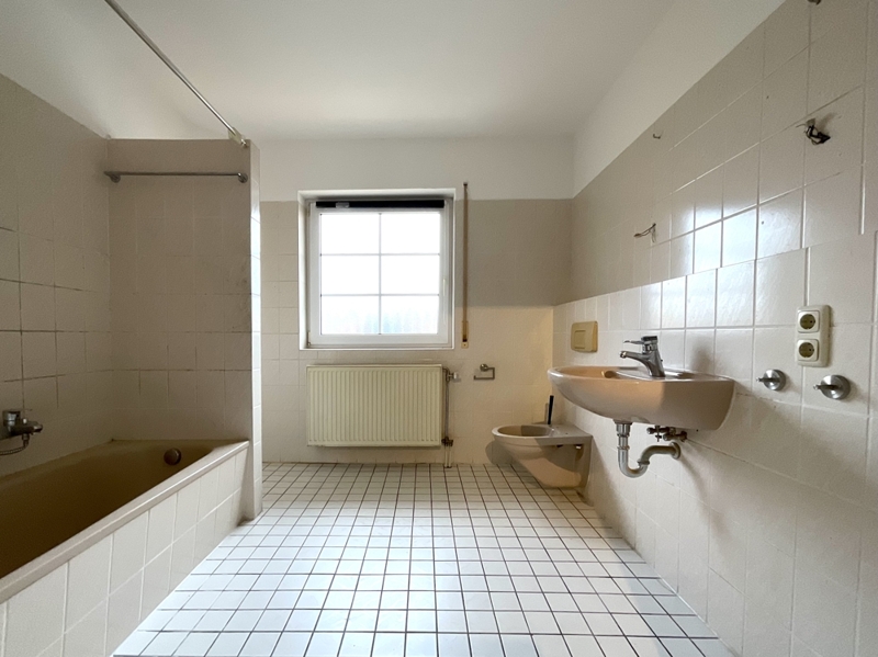 Das geräumige Badezimmer ist mit einer Badewanne ausgestattet, hier können Sie den Tag mit einem heißen Bad ausklingen lassen. Das WC, Waschbecken sowie die Armaturen werden derzeit noch erneuert.