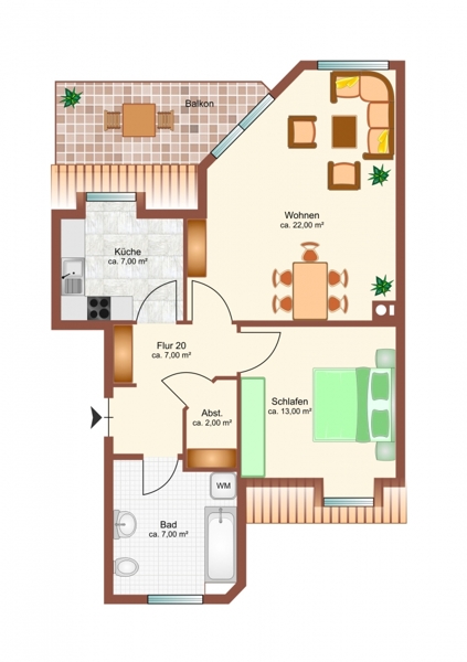 Nutzfläche 10 m² Anzahl Zimmer 2