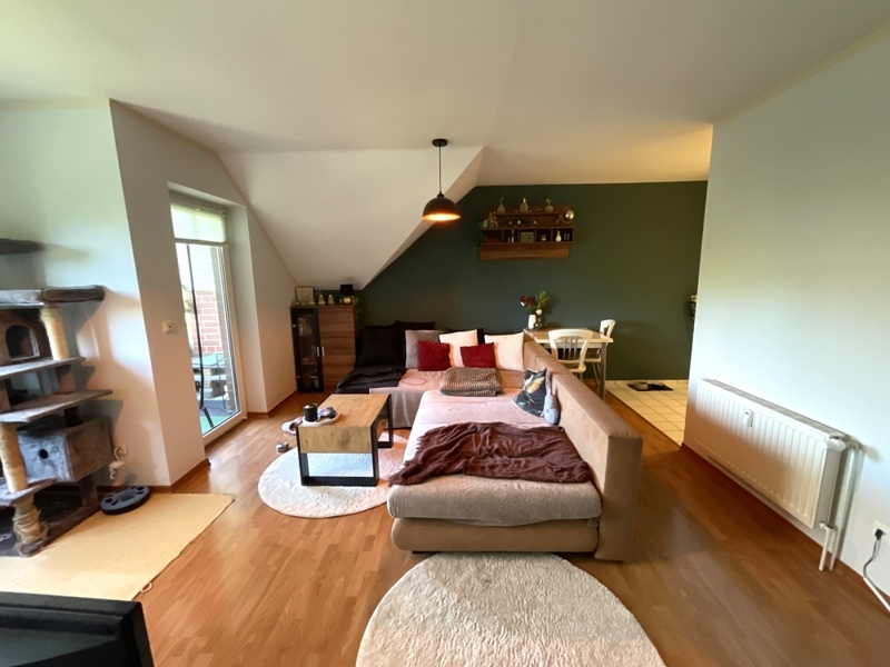 Die Wohnung verfügt über ein gut geschnittenes Wohn-/Schlafzimmer. Hinzu kommt die Küche, welche direkt ans Wohnzimmer anschließt.