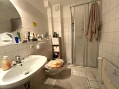 Das Badezimmer ist mit einer Dusche ausgestattet und pflegeleicht gefliest. Hier können Sie mit fröhlichen Farben und Bad-Accessoires Ihr Badezimmer hübsch gestalten.