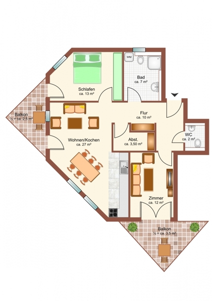 Hauswart, Gartenpflege, Winterdienst, Treppenhausreinigung sind in den Betriebskosten enthalten.