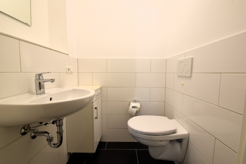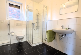 Das in zeitlosen Farben geflieste Badezimmer ist mit einer Dusche ausgestattet. Ein gesondertes WC kann von Ihren Gästen genutzt werden und ein praktischer Abstellraum für Staubsauger, Bügelbrett oder Getränkekisten ist ebenfalls vorhanden.